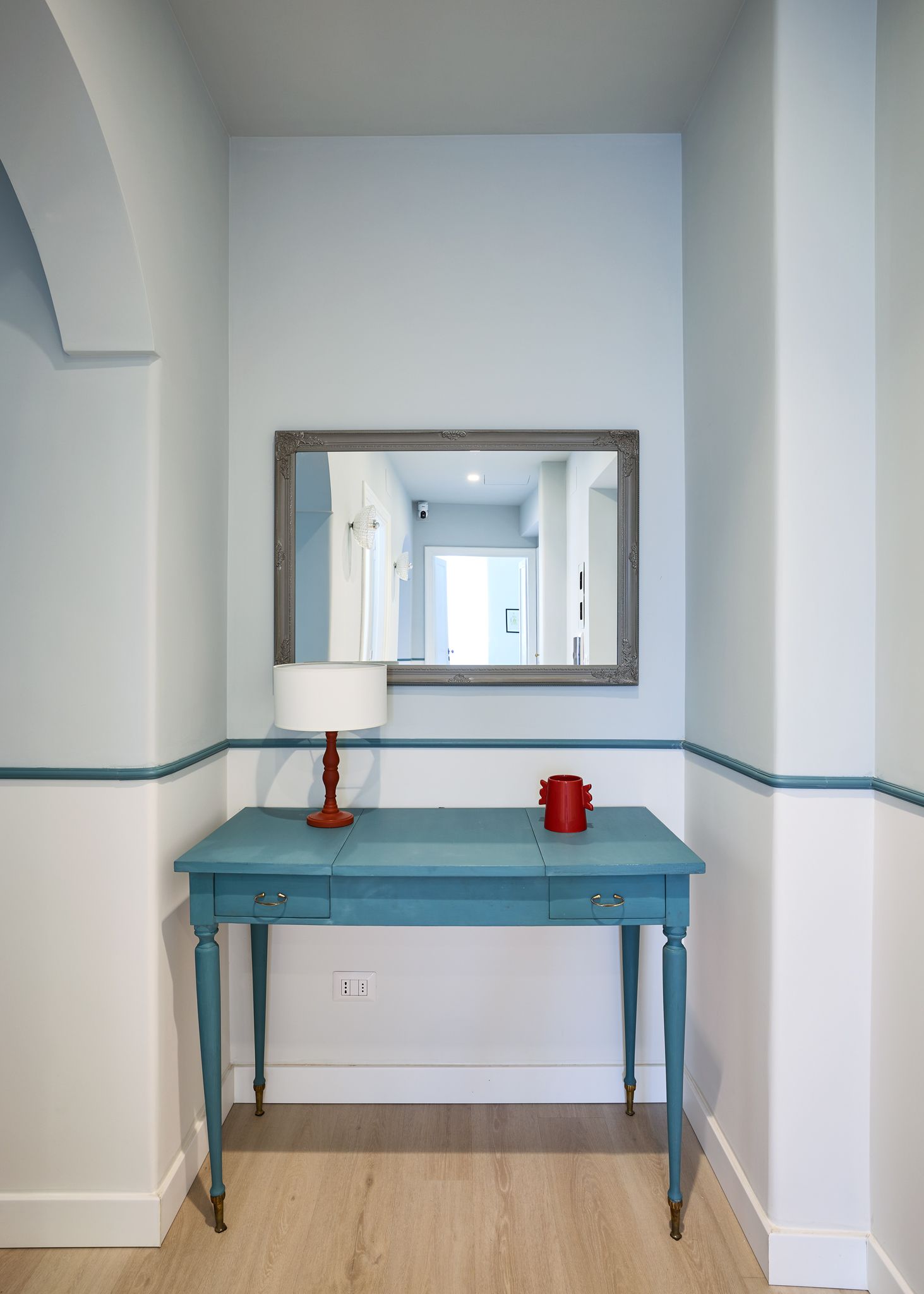 Il design dell'appartamento, ristrutturato nel 2023, è ispirato ad uno storico atelier di moda italiana che ha avuto qui la sua sede a partire dagli anni 60 e conserva alcuni dettagli che rendono unica la sua atmosfera.